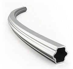 24-inch long x 34mm diameter hexagonal pipe made from aluminum.Using a complex cross section design combined with the aluminum alloy creates pipes that are significantly lighter in weight while providing greatly improved strength—as much as double that of conventional round pipe.