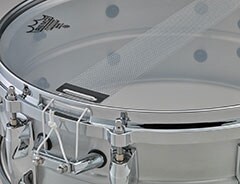 Após várias avaliações do nosso design por Steve Gadd, criámos uma tarola revolucionária. Até à data, as estruturas de tarola da Yamaha apresentam tradicionalmente um aro metálico que junta as duas partes do casco no interior do tambor. Contudo, agora apresentamos uma versão com um aro central fixo à parte exterior do tambor, de forma a produzir um som muito mais aberto do que o das tarolas convencionais, para um desempenho mais articulado e natural.
