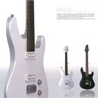 This model achieves both significantly lighter weight and a rich body resonance from the new design, and also features LEDs to show which pickup is selected. The white color tone expresses the reduced weight through a unique appearance that gives the feel of an innovative, advanced guitar.