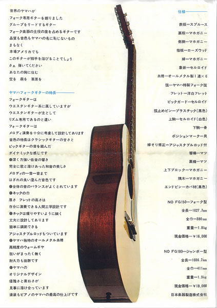 1966FG180: Yamaha's first made-in-Japan folk guitar