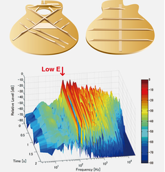 As pesquisas contribuíram para o desenvolvimento de um novo desenho das barras acústicas do tampo e barras mais curtas do que o habitual nas costas.
