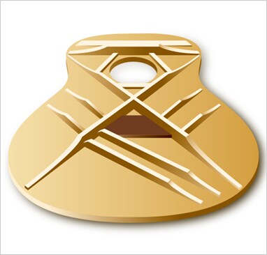 O braço de 5 camadas em mogno e rosewood, desenhado com uma volute na pala e equipado com um varão de dupla ação ajustável, cria um braço com excelente resistência e estabilidade. *#26, 36, 56 têm uma volute na pala.