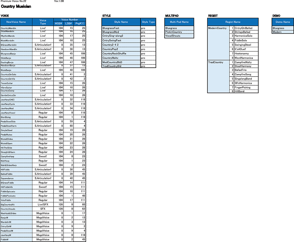 Estilos que incluem: CountryMandlin | BluegrassBanjo | TexasGuitar BluegrassFast | CntrySing-along2 | CntrySwingFast | CountryPop2 | ModCountryBld3 | e muito mais!