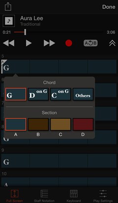 Play the chords of the audio songs stored on your iOS device by simply reading the chord sequence extracted by Chord Tracker and shown on the iOS device display. You can enjoy playing the melody part with right hand and the chord with left or playing the chord with right hand and the bass with left hand. Furthermore, by using a melody suppressor function that reduces the volume of melody part, you can enjoy playing the melody part only.