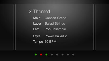 Ao alterar para o modo horizontal, os botões mostrarão o seu conteúdo, como as Vozes de expressão, Estilos, Tempo e o nome da secção, tornando-lhe mais fácil ver o que têm as memórias de registo.