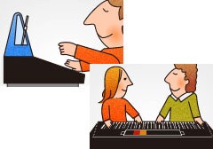 Funções úteis para praticar incluindo um metrónomo e o Duo Mode
