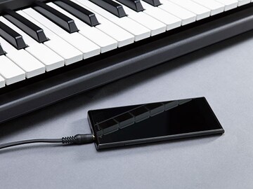 É possível ligar um leitor de música portátil para ouvir as suas músicas preferidas através dos altifalantes do teclado. Sinta a sensação de estar a tocar com uma banda!