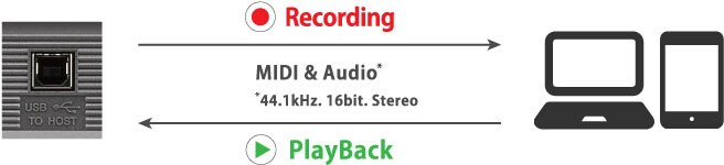 O terminal USB TO HOST permite-lhe ligar a um computador ou dispositivo portátil e gravar áudio de alta qualidade sem necessidade de uma interface adicional. Uma variedade de softwares iOS criativos e educacionais estão disponíveis na App Store*.