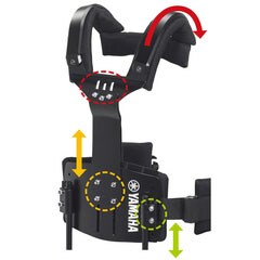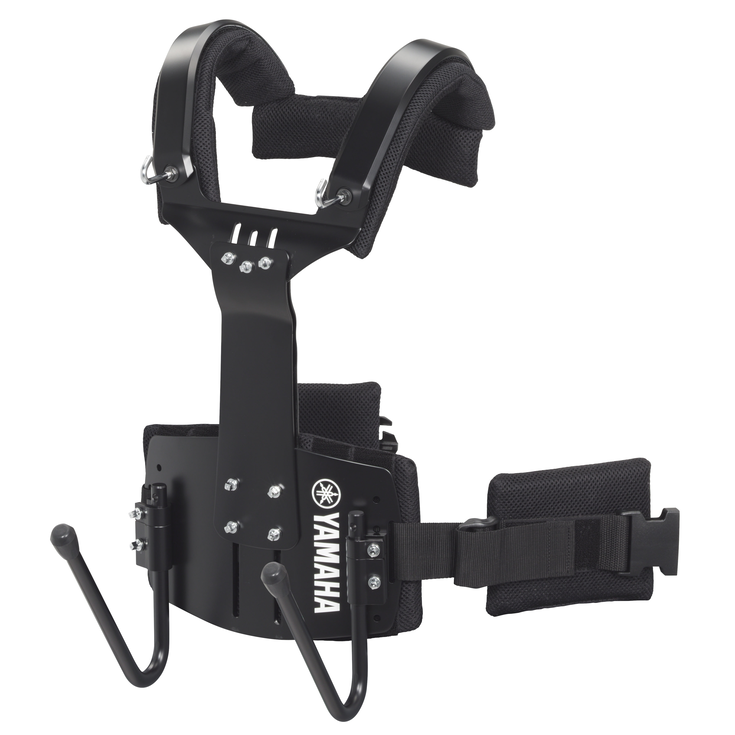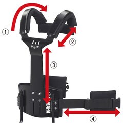 Adjustment mechanisms provided for the belly plate, chest plate, and arm attachment sections make it easy to achieve an optimum fit for users with a wide range of body shapes, while also allowing easy adjustment of instrument height to suit personal preference and maximize playability.