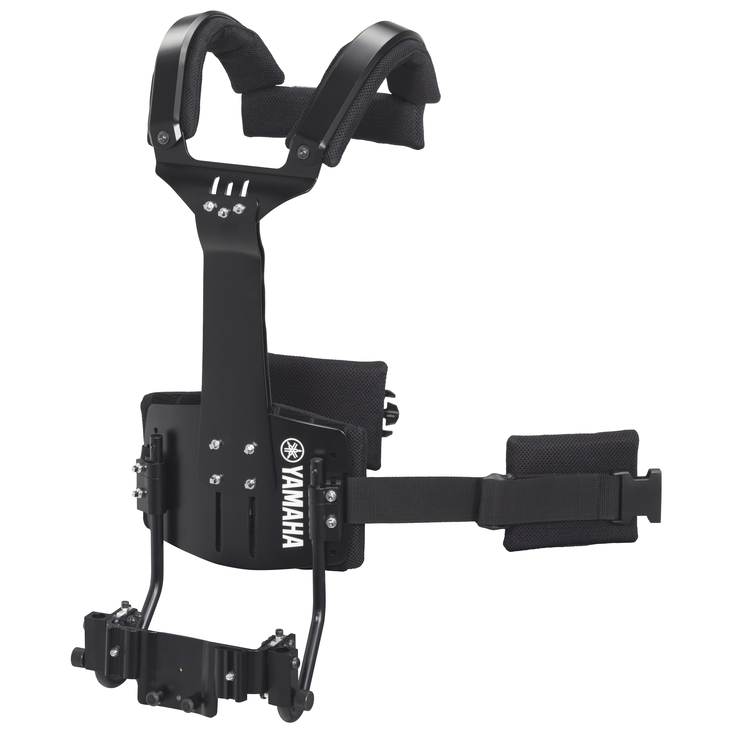 Adjustment mechanisms provided for the belly plate, chest plate, and arm attachment sections make it easy to achieve an optimum fit for users with a wide range of body shapes, while also allowing easy adjustment of instrument height to suit personal preference and maximize playability.