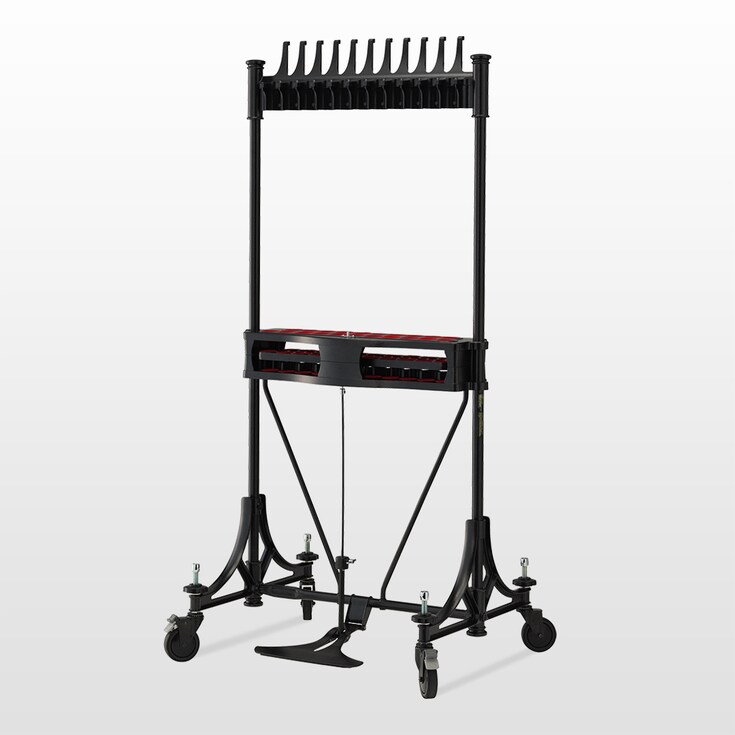 Para prevenir movimentos indesejados das rodas foi introduzido um sistema de travão. Além disso, o YCH7018 vem equipado com um sistema de rodas ajustáveis em altura. Se os Sinos Tubulares não estiverem devidamente nivelados poderão tocar no feltro reduzindo drasticamente a sustentação. O sistema de regulação de altura permite nivelar o instrumento para que os tubos possam vibrar livremente e sem tocar no abafador.