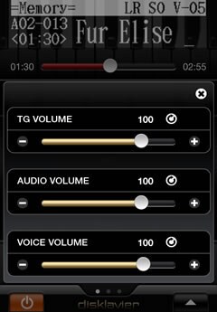 Pode utilizar o seu iPhone, iPod touch, ou iPad exatamente como um controlo remoto standard para operar o seu Disklavier E3 ou o DKC-850. Além disso, a informação do Disklavier aparece no visor do seu iOS, o que lhe permite aceder a todas as funções do Disklavier, onde quer que se encontre, desde que seja no raio de ação do router sem fios ao qual está ligado.