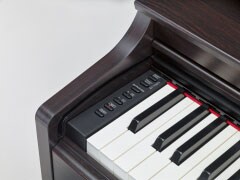 O piano digital Yamaha Arius YDP-143 oferece som e sensibilidade autênticos de piano, ideais para cada aspirante a pianista. A ação de teclado Graded Hammer Standard (GHS) auxilia a técnica e força corretas de dedos, para uma transição fácil para tocar em pianos acústicos. O Motor Pure CF melhorado possui gravações expressivas, de alta resolução, do grande piano de cauda Yamaha CFIIIS. A função Damper Resonance recria digitalmente a profundidade sonora de um piano acústico com o pedal pressionado, ao passo que reverbs melhorados definem o espaço para replicar o sentimento de tocar em vários ambientes diferentes. Com polifonia de 192 notas, a maioria das mais complexas composições de piano podem ser tocadas sem abdicar de notas e as notas prolongadas soam realísticas. O Arius YDP-143 está disponível nos acabamentos Rosewood ou Black Walnut e o visual excede quaisquer expectativas de um típico piano elétrico, acrescentando um visual clássico a qualquer lar.