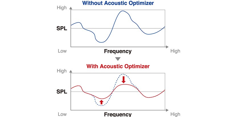 Os altifalantes que vêm instalados no móvel têm a tendência para, se nada for feito, aumentar o volume do som derivado da frequência de ressonância do material. No entanto, com a instalação destes optimizadores acústicos com uma frequência semelhante, esta ressonância desaparece. Esta melhoria sonora só acontece graças ao conhecimento extenso da Yamaha acerca das características acústicas internas dos instrumentos musicais.