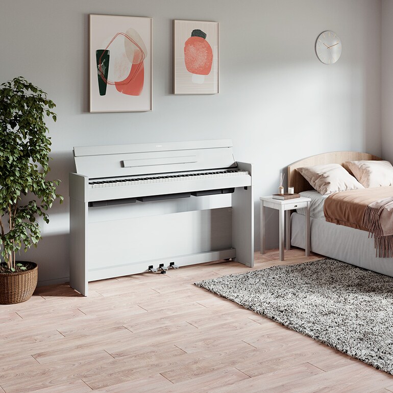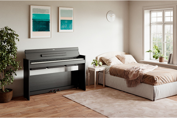 O móvel deste modelo é bastante compacto, é possível instalá-lo praticamente em qualquer divisão, e confere um visual chique e elegante que melhora sem esforço qualquer espaço de vida. Além disso, o fecho da tampa do teclado dá ao instrumento um aspecto plano e despretensioso.
