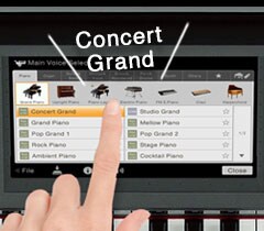 O CVP-605 oferece uma nova e grande função, denominada de Piano Room, que pode usar quando se quiser realmente concentrar na performance de piano e saborear o som do piano. Pode seleccionar entre quatro tipos de piano – piano de cauda, piano de cauda pop, vertical e honky-tonk – assim como um local de execução, como um salão de concertos, catedral ou palco. Instantaneamente, a qualidade tónica muda para igualar esse piano e local, dando à sua performance uma sensação totalmente diferente. Quanto toca com o piano de cauda ou o piano de cauda pop, até pode escolher ter a tampa “virtual” do piano aberta ou fechada.