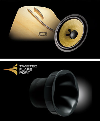 A tecnologia Twisted Flare é uma nova tecnologia Yamaha que ajuda a tornar as frequências graves mais claras. A forma “enrugada” e ligeiramente curva ajuda a distribuir o fluxo de ar de forma igual. Comparado com um altifalante normal, o sistema Twisted Flare reduz o ruído da turbulência contribuindo para obter umas frequências graves mais claras e definidas.