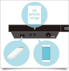 Another way to enjoy TransAcoustic™ technology is to play the piano accompanied by pre-recorded tracks played through the soundboard. Because the instrument is a real, fully strung and resonant piano, the natural sympathetic vibrations of the soundboard, case and more significantly strings add a completely new dimension to performance. The sampled sounds come to life with a brilliant realism no other instrument can match. You can use the USB port to play back .wav-files or use the AUX-IN jack to connect an external music player.