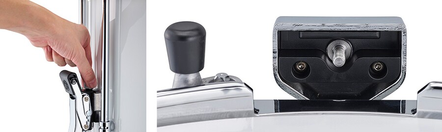 Strainer dimensions and knob shape have been revised to reduce slack and improve operability. The revised design also features a new snare guide that makes snare attachment easier than ever.