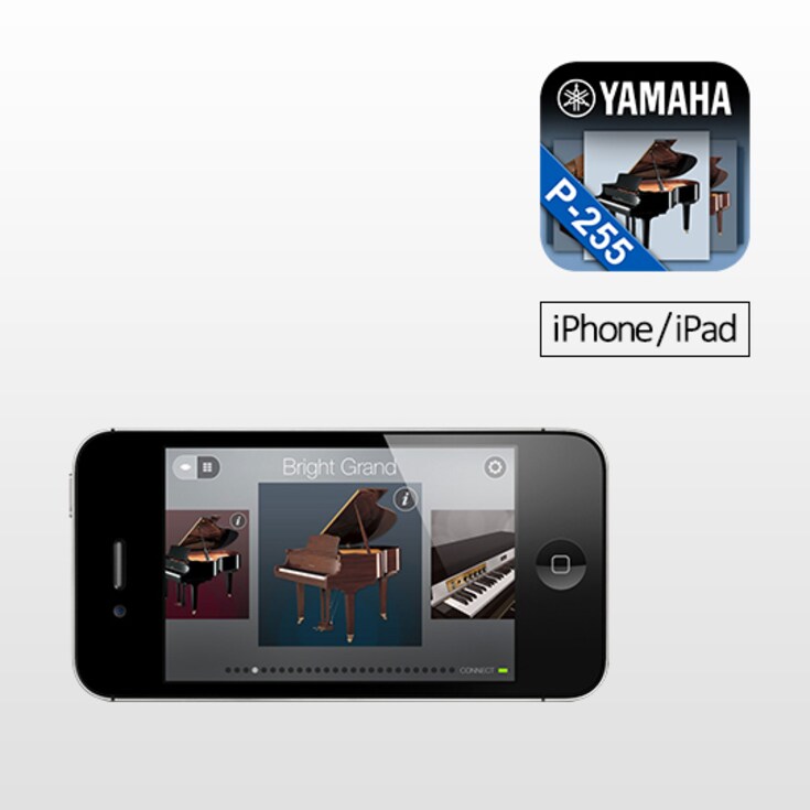 Use an iOS device (iPhone/iPod touch/iPad) for even easier and more convenient control of the P-255. This is a dedicated app that makes the compact and stylish digital piano, P-255, even easier to use. The app supports a wide variety of playing situations on the P-255, from piano practice to live performance or performing at parties.