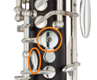 O copo da sapatilha da chave de Si tem uma grande influência na resposta geral do oboé. Neste modelo, foi adicionada mais espessura e a fenda foi reposicionada na parte inferior da sapatilha. Esta alteração não só reduz o ruído do Dó#, como também melhora a articulação nas notas mais agudas e a resposta geral do instrumento. A alavanca de trilo Si-Lá# foi ajustada à altura da chave de Si, proporcionando uma maior fluidez na execução.